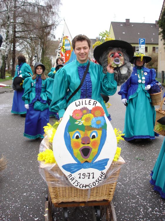 Ehre bei den Wiler Rätschgosche als Täfelibueb mitzulaufen. Nicht schlecht, wenn man bedenkt, dass es eine reine Frauenclique ist. :-) |
