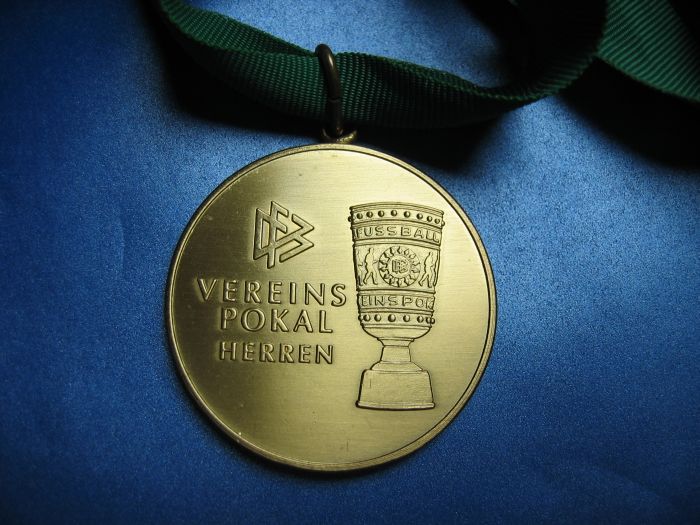 Original Spieler Medaille von ... (bleibt mein Geheimnis) zur Erinnerung an das gewonnene Endspiel um den DFB-Pokal 2002 | ||||