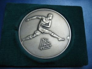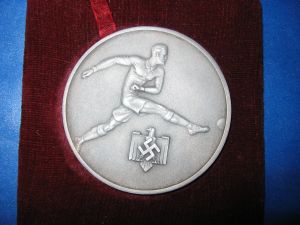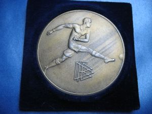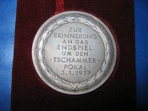 Original Spieler Medaille von Ernst Poertgen zur Erinnerung an das Endspiel um den Tschammer-Pokal 1936 | Rückseite der Medaille | |||