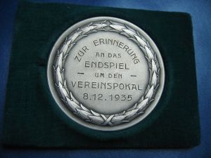 Original Spieler Medaille von Ernst Poertgen zur Erinnerung an das Endspiel um den Vereinspokal 1935 | Rückseite der Medaille | |||