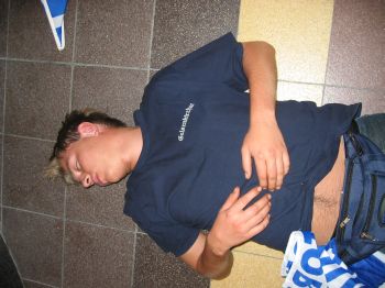 4.00 Uhr, Matze macht sich`s im Bahnhof bequem | wecken konnten wir in eh nicht mehr | |||