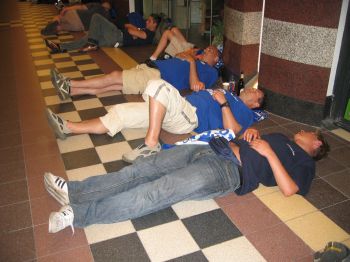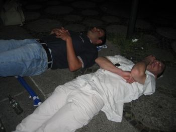 4.30 Uhr, Christian im Mc Donald | 9.00 Uhr, Matze mit neuem Schlafgefährten | |||